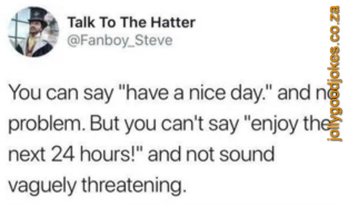 Current Rating (2 Votes): 10  Rate this Joke: 1 2 3 4 5 6 7 8 9 10